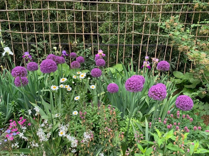 现蕾后期花序生长较快,平均每天可生长2一3厘米,5月中旬,展开前的花蕾呈紫红色,5月下旬,花茎长至90~一120厘米时花朵开放,单个花球开放15天左右,直径可达20厘米以上,盛花期近20天。