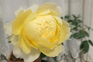 阳光古董它的花朵是非常温暖的黄色,初开的的时候花型像一个圆圆的包子,等到完全开放后就成了一个杯状花型,花径很大而且很香,是阳台微月中的热门品种之一。