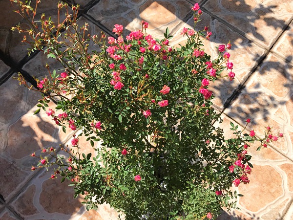 超微月季它的植株高度也就在四五分十公分,但它的分枝性是非常好的,而且枝条很细,密密麻麻的,这一根枝条上能够开几十朵话,不大的一盆超微月季开个二三百朵花是非常正常的事。