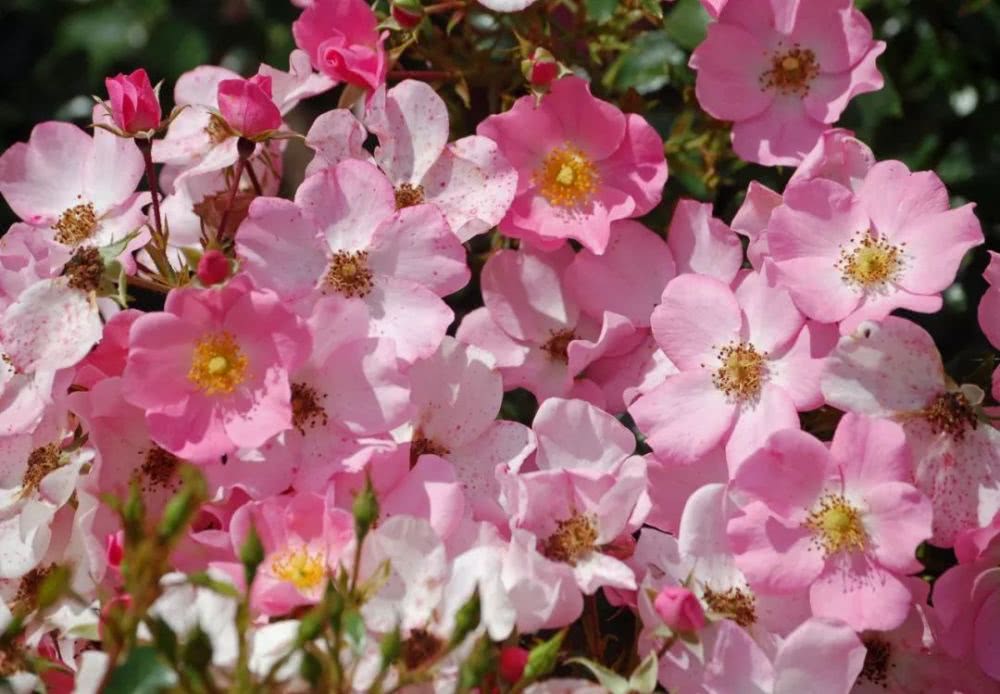 2002年于德国培育的品种,一种小巧单瓣的粉红系月季,花径只有4到5cm,花量倒是很大。