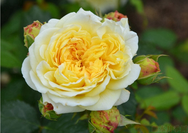 中等,椭圆形花蕾。直立生长,分枝多,强健。抗病性好,抗黑斑,非常抗白粉,非常抗锈病。