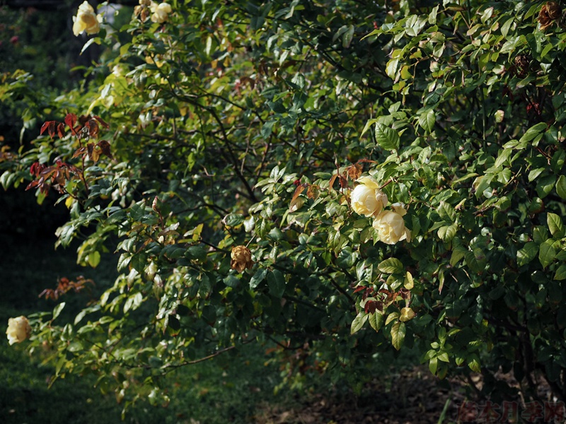 虽然一季花,但这个法国蔷薇园艺种此时圆滚滚的株型,铜红色的果实,开始泛金色的叶片,谁又能说没有观赏价值呢