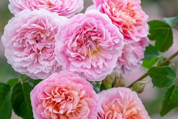 花朵是明亮的杏粉色,成簇开放,初开时是浅杯状的,逐渐开放成莲座状,花朵具有非常浓郁的水果香味。