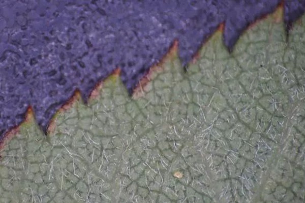 仔细观察,蔷薇叶片背面有绒毛