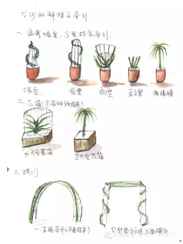 选留比较好的枝条3~6个,把直立的部分编成如图的样子,顶部的枝条也需修剪
