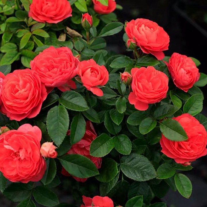 红果汁月季它的花型和果汁阳台是非常相似的,浅杯状花型,颜色是深粉色的,大小在5-6公分,花朵呈簇状开放,丰花性好,植株无刺分枝性好,香味比较的弱。