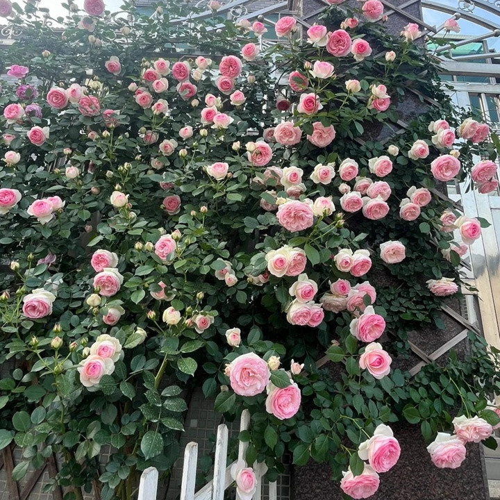 粉色达芬奇和粉龙这两款月季它们都是来自法国玫昂,抗病性都是中等偏上,花量也是相当多的,地栽长势强劲,一二年就能够长成很大的一片花墙。。