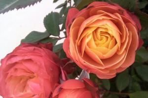 浪漫比克是黄色的中心,外面的外瓣是橙红色的,而浪漫宝贝是黄色的,最外面的花瓣带有一些橙红色的斑块,大小都在8公分左右。如果浪漫比克的红色小一些,浪漫宝贝的红色多一些,它们基本上就一样的,而且它们都是几乎无香的品种,植株高度在40-50公分左右,枝条光滑几乎无刺。