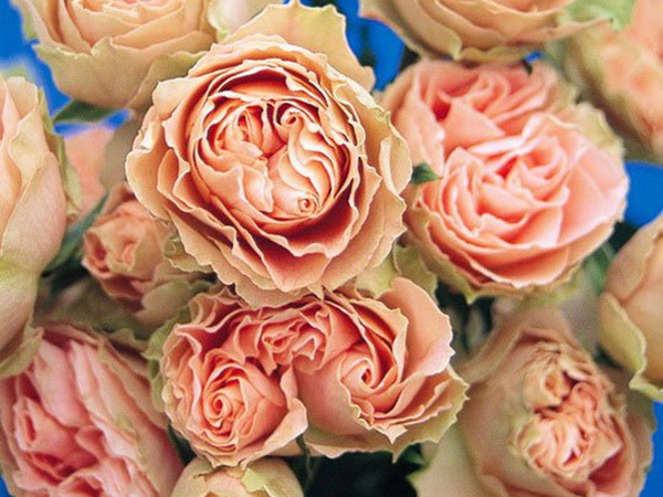 7、浪漫蕾丝:浪漫蕾丝月季,属于切花月季,多头开花,花色是米粉色带有一点点的橙色,其花香味是淡淡的微香。