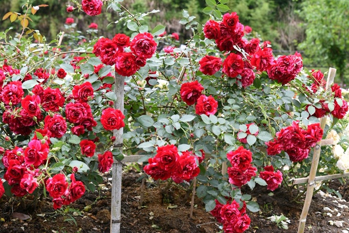 4、株型:慈萱植株高度在80-120公分左右,枝条比较粗壮,直立性也非常好;惊鸿月季植株高度在80公分左右,枝条比较的柔软,开花需要支撑,刺也较多。