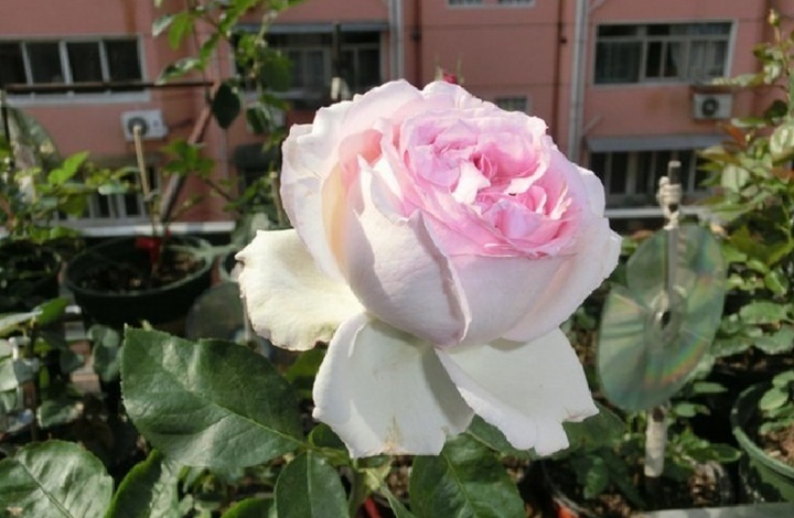 相比其他伊芙系月季,四号的株高在0.8-1.2米左右,分枝性强且枝条粗壮,适合阳台盆栽或狭小庭院种植。