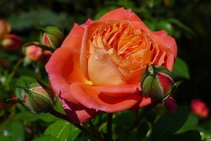 1、花朵: 花朵的颜色主要呈现出鲜艳的鲑鱼橙色,搭配着球形到莲座开放的花型,很有一种皇后的贵族气质。