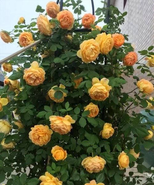 这种月季花是金黄色的,非常吸引人,给人一种尊贵的感觉,平常最好多晒晒太阳,有充足的光照进行光合作用,黄金庆典开花会更多更鲜艳,在开花之前追加一些磷钾肥,花色会更艳丽的。