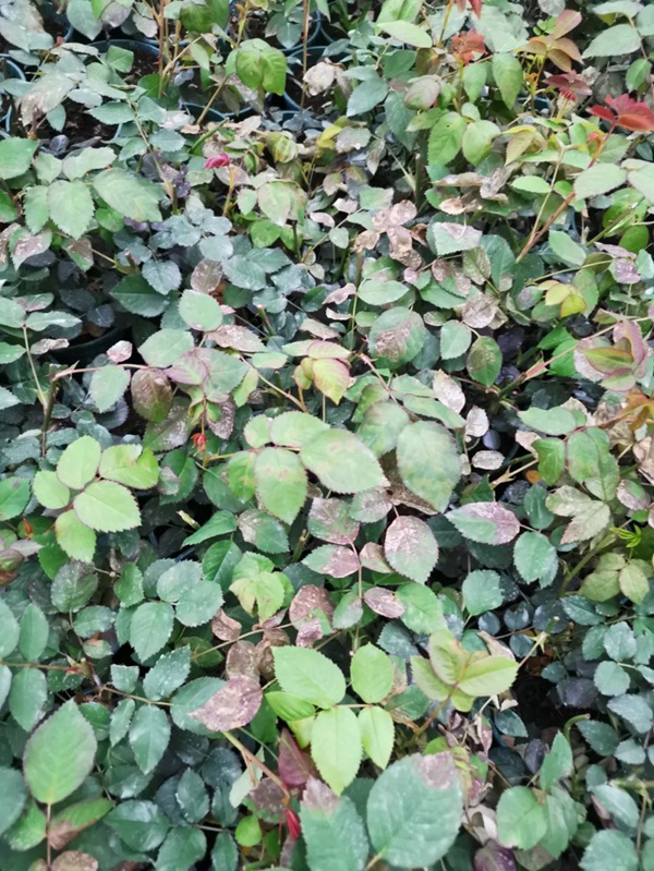 2、病原菌:玫瑰霜霉病是由真菌中的玫瑰霜霉菌感染引起的(霜霉属病菌Peronospora sporsa Berk)。细菌以卵孢子或菌丝体越冬。细菌在病组织中通过卵孢子或菌丝越冬。当温度低、相对湿度高、植物表面有水滴时,病害容易发生和扩散。当温室通风不良、植物过密、湿度高、氮肥过多时,病害严重。
