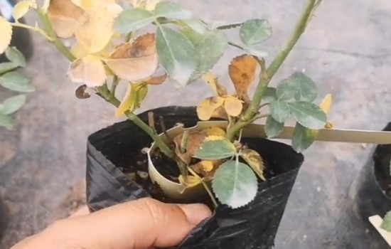 但有些月季小苗本身长势比较瘦弱,甚至出现了一些黄叶、落叶的现象。这种小苗一般是由于根系比较弱或者受损的结果,因而不宜给它施肥。
