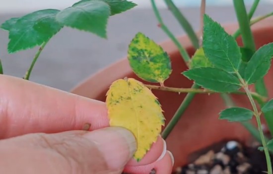 月季因水肥过量引起烂根时,会出现黄叶落叶现象。同时在缺水少肥时,仍然也会黄叶。如果它的叶面泛黄而叶脉呈绿色状态的话,一般是由于缺肥造成的。可以给它使用一些复合肥或有机肥,就可以解决这种黄叶问题。