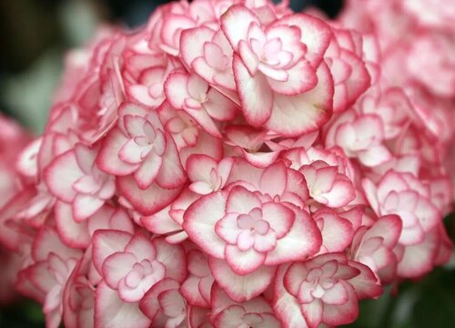 纱织小姐的花期在每年5月至9月,持续时间较长,它的花瓣边缘呈粉红色,花球也不太大,因此观赏价值很高,花朵有淡淡清香,只有靠近闻才能闻到。