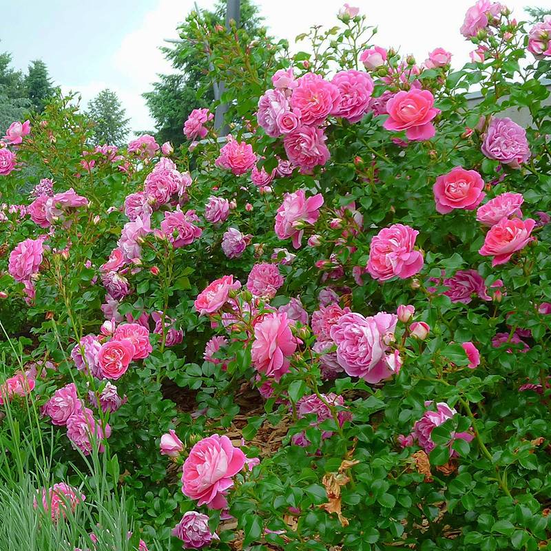 可爱的重瓣6cm中型花朵5-15朵成簇开放,花瓣约60枚,正面为粉红色,背面为白色,形成浪漫的景观效果;花朵完全打开后露出花心,是良好的蜜源;植株继承玫迪兰®️系列一贯的出色抗病性与复花性,枝条成自然拱形生长,株形低矮横扩,大小仅60cmx70cm;适合混合花境、岩石花园、群植造景、容器栽植、阳台点缀(需充足日照)。