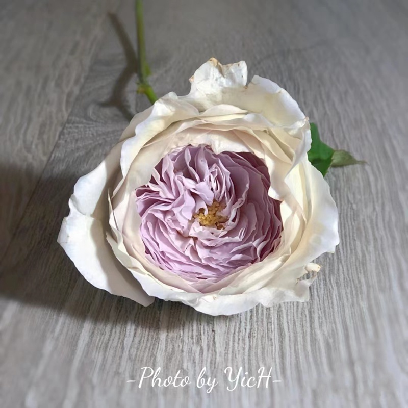 牛奶珍珠Milky pearl它的植株高度100-120厘米,花朵大小在8厘米左右,中间颜色是淡蓝紫色花朵,外面是灰白色的,带有温和的果香。,瓶插时间10天以上。