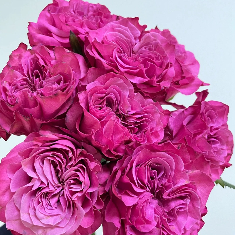 乡村蓝调/蓝调玫瑰Country Blue的植株高度可达120厘米,宽度约60厘米,生长旺盛。花朵直径大约8-10厘米,含有超过50片花瓣。花瓣的颜色是令人惊艳的粉色或蓝紫色,外围花瓣的颜色稍深,卷曲的花瓣折叠成了迷人的心形,气味清淡,这个品种对疾病和雨水具有很好的抵抗力。