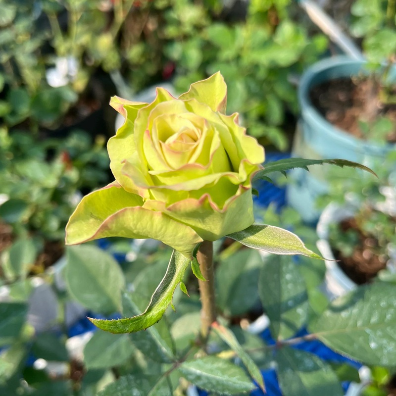 “时尚绿色”月季的植株高度介于80-100厘米之间,花朵直径约为10厘米,拥有大约35片的花瓣。其花色独特,呈现出奶油绿色,有时还带有黄色调。当花朵完全开放时,会展现出柔和的奶油色,有时沿着花瓣的扇形边缘还会出现棕红色的边框。它的花型是杯状的,中心位置较高。除了美丽的外形,这种月季还散发出淡淡的香气,瓶插保鲜期可以长达14天。