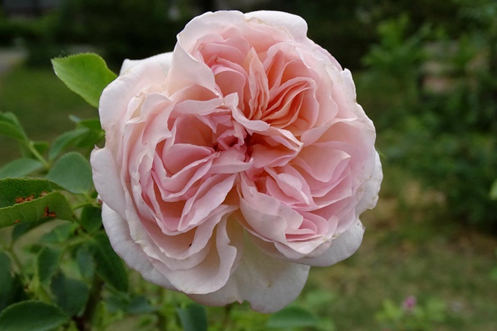 辛白林这款月季它的名字来源于莎士比亚根据薄伽丘的故事创作的剧本,它的花朵颜色虽然是浅粉色的,但天热的时候或者是开放到后期的时候也会变成近乎白色,花瓣数量也不多在35枚左右,植株高度在120-150公分,枝条少刺,叶片深绿,但抗黑斑病的能力一般。