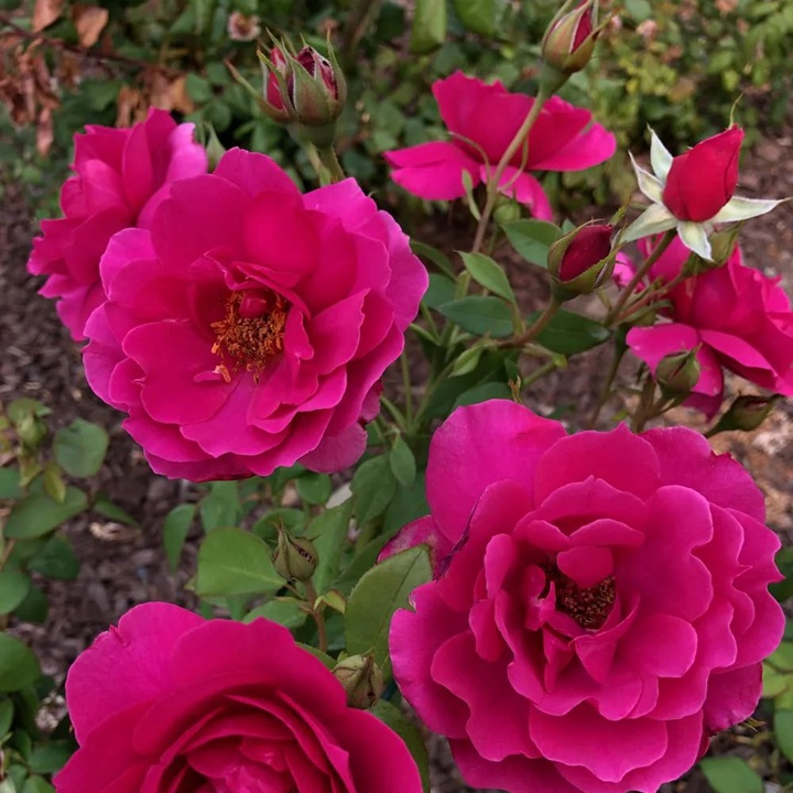 波西亚它的植株高度在100公分左右,它的枝条是比较细的,叶片也比较小,颜色是深绿的,春季刚发出的新叶是青铜色的,这款月季它的耐热性、耐旱性比较好,抗病性比较的一般。
