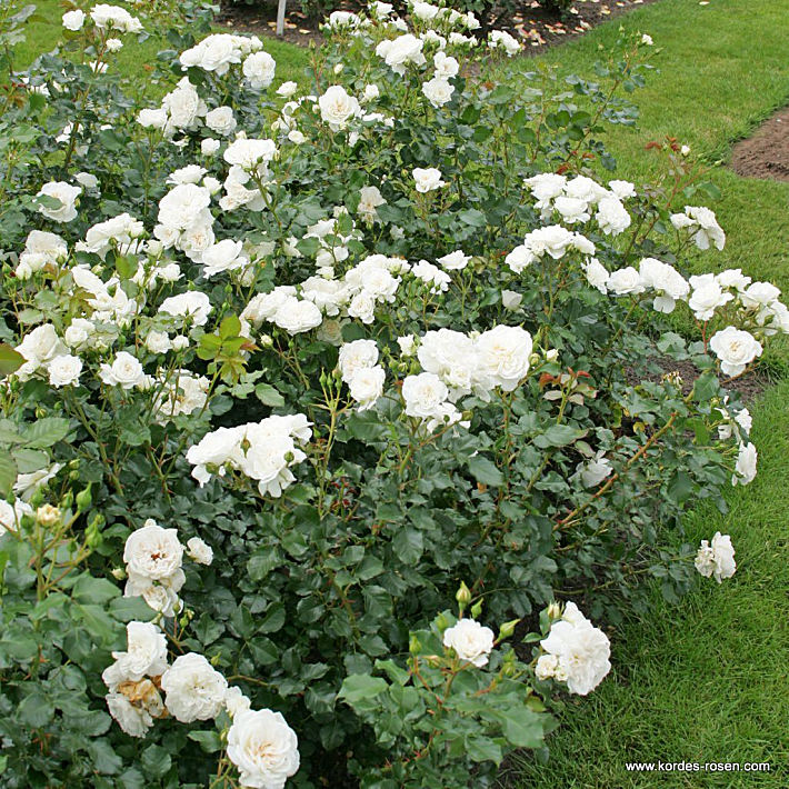 舞裙绒球月季它的植株高度在80-120公分左右,冠幅在60-100公分,花朵是奶油色的,中心是浅黄色的,初开是杯状花型后期是浅杯状,花朵大小在6-8公分左右,带有中度的甜香,花朵成簇状开花,丰花性好。