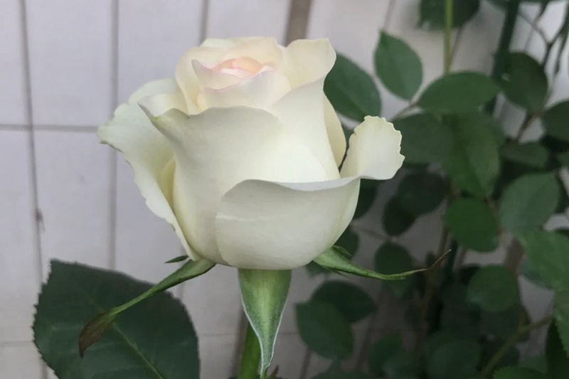 白艾莎它的花朵是奶油白色的,初开时中间会显现出一丝粉红色,但非常的浅,完全开放后基本就不可见的,不过也有可能出现返祖的现象,花朵无香,耐热耐雨洒。
