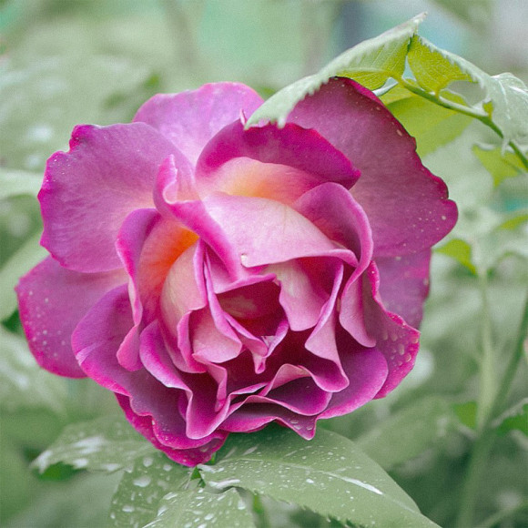 恶魔的海洋是一款丰花月季,其母本为另一丰花月季品种 Prieuré de St Cosme,父本则是 Blue for you(蓝色梦想)。恶魔的海洋最显著的特点,在于其对比强烈的紫金配色。花朵既继承了母本金背的特征,又融合了父本的深紫色调,且颜色呈渐变状态,色彩层次极为丰富。花瓣有着很棒的丝绒质感,视觉与触觉体验皆佳。