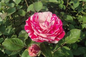 西子烟雨它的花量丰富,耐高温,抗病性好,生长旺盛;低维护,自洁性好,抗黑斑病和白粉病。