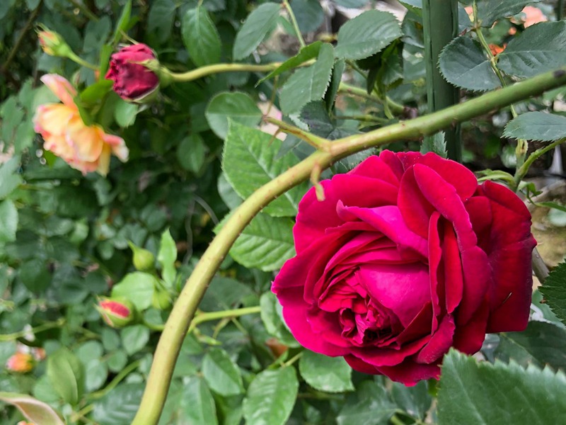 威廉莎士比亚2000它的植株不高在1.2米左右,冠幅饱满、分枝性不错,花朵初开时是绯红色,开到后期会被紫,花瓣的数量特别多。威廉莎士比亚2000它的花朵比较大,一般单头开放,少数也会出现多头,抗病性不错、复花速度也不错,很适合庭院阳台种植。