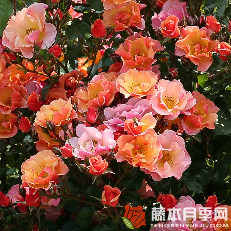爵士Jazz它的植株比较的低矮只有50-80公分,花朵是非常特别的颜色,初开是橙黄色的,然后逐渐过渡成桃粉色然后再变成浅粉色,花朵自洁性非常好。