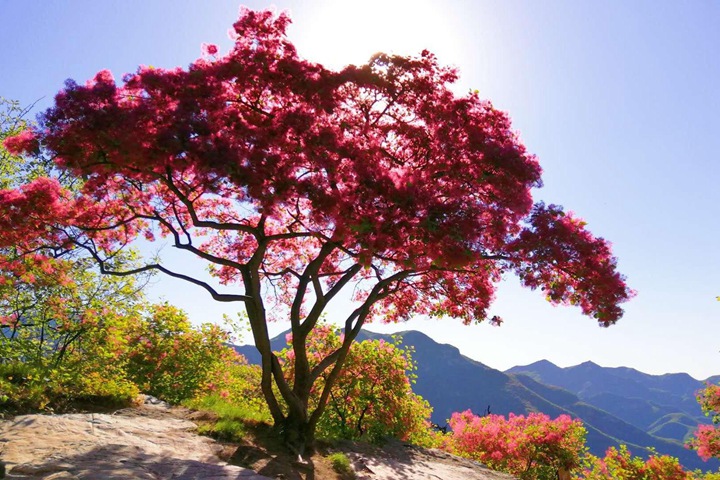 黄栌这个树种是很优良的观赏树种,不仅近看优美,同时它的花和叶也有很高的观赏价值,到深秋的时候整株树木的叶片都鲜红欲滴,而且这个时节果实成熟后也是鲜红色的,所以整株树冠鲜红夺目。它适合栽种在大型公园或者天然公园以及山坡上,也适合单独栽种或者混栽,适合草坪,也适合栽种在庭院当做庭荫树。