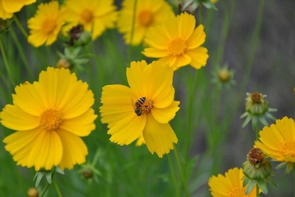 金鸡菊分枝很多,花朵鲜艳迷人花朵上下颜色都是深黄色,植株30-60厘米,花期为7-9月份,适合室内当做切花种植。
