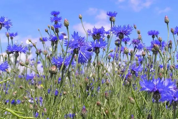 矢车菊属于单株单头,植株高30-70厘米,花色为蓝色、白色、红色或紫色等,花朵盛开时间为2-8月份,花期很长。