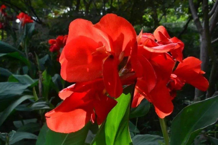 开美人蕉主要在夏季和秋季开花,北方从6月到10月开花,花期长达4个月,南方可以全年开花。花型巨大,花色也很鲜艳。包括鲜黄色、鲜红色、橙色、白色和带有许多斑点的大花。此外,美人蕉还有粉红、紫色等品种。开花时具有良好的观赏价值,是值得栽培的植物。