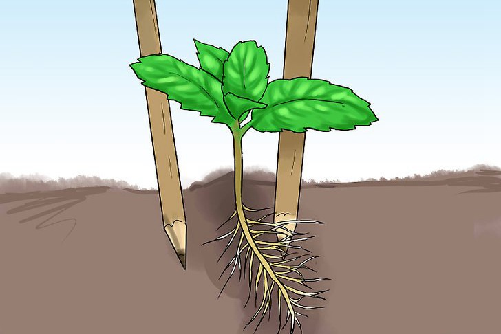 6、在薄荷周围插入几根木钉,为植物的生长提供支撑。等植株生长稳定后再把木钉抽掉。