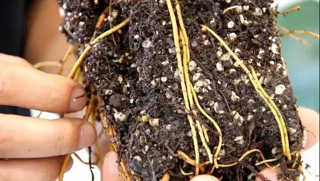 像下面这一株的根系(图1),可以看出根系已经爆满了,原本应该是土的地方也长满了根,在这种情况下,土壤占比减少,盆内的营养和储水能力都不够,特别是最外层的根系,由于没有土壤附着,无法吸收足够的水分和营养,而且根系已经没有多余的空间继续生长,时间久了,外层的根系甚至会被挤压至烂根(图2)。